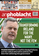 Sinn Féin’s Pearse Doherty speaks exclusively to An Phoblacht. Padraig MacLochlainn writes on the misery of the Mica crisis. Mairéad Farrell and Caoimhe Archibald tackle key economic and environmental issues. Martina Anderson writes on her new role. Ciarán Quinn gives a US angle. Laurence McKeown was at the Christy Moore concert marking the relaunch of his Hunger Strike album.