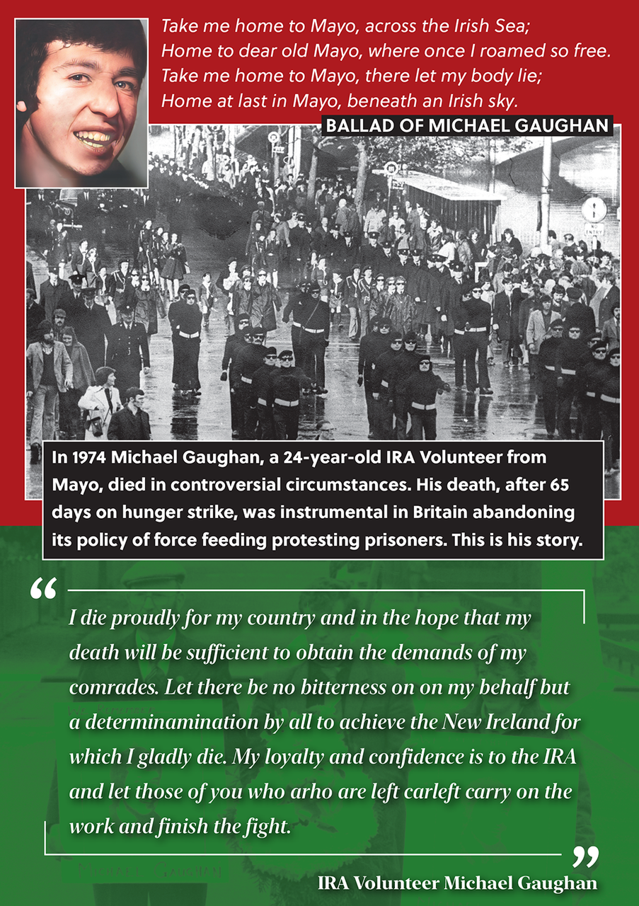 Fifty years ago in an English prison a young Irish Republican from County Mayo died after being brutally force-fed while on hunger strike. He was protesting for his rights and those of his comrades as political prisoners. His name was Michael Gaughan and this book tells his story.