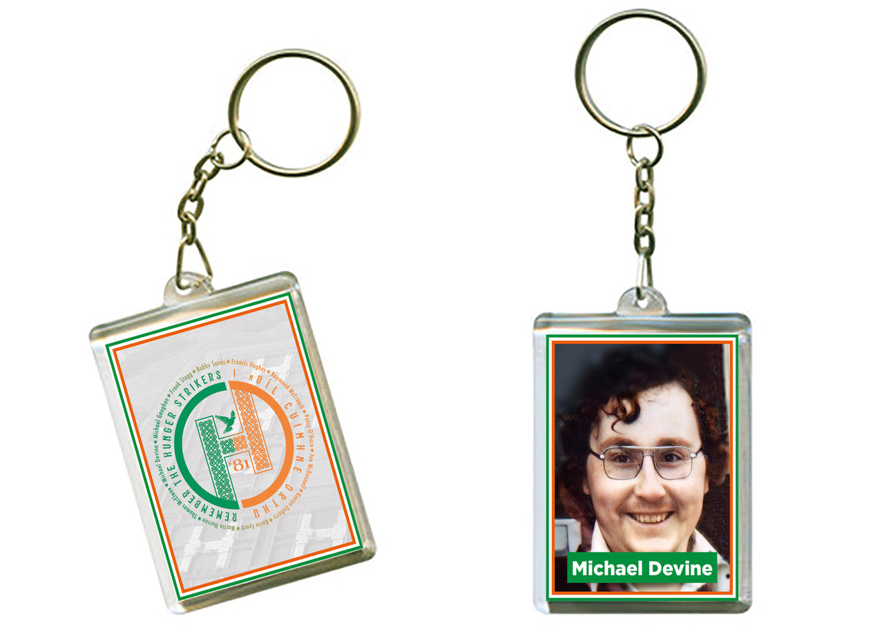 12 Different keyrings commemerating the twelve Hunger Strikers who died in the current phase of the struggle.